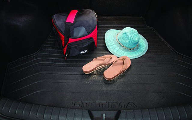 Protect your Kia Optima's entire trunk with Kia's Cargo Tray, providing comprehensive protection against spills, dirt, and wear. Tailored to fit your vehicle perfectly, this Genuine Kia liner ensures complete coverage while offering easy-to-clean convenience. Simplify maintenance and safeguard your Kia's trunk with this reliable, easy-to-clean, OEM liner.